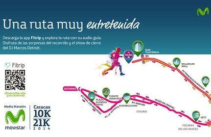 La Media Maratón y Carrera 10K Movistar tiene un componente innovador y digital con la aplicación FITRIP y que proporciona a los participantes rutas de entrenamiento y la opción de tener como guías turísticos a los talentos de Movistar, quienes compartirán datos de la ciudad, mientras recorren los municipios Chacao, Sucre y Baruta.