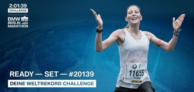 Aunque el Maratón de Berlín BMW no se llevará a cabo como estaba previsto para el 26-27 de septiembre de 2020, innumerables atletas estarán activos en todo el mundo mientras se enfrentan al desafío de las 2:01:39, en el que deberán cubrir tantos kilómetros como sea posible en 2:01:39 horas. Este tiempo corresponde al récord mundial establecido por Eliud Kipchoge en 2018 en el BMW Maratón de Berlín.