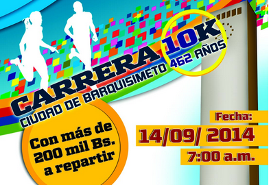 El Aniversario 462 de Barquisimeto se celebrará en movimiento con la Carrera Ciudad de Barquisimeto 10K, la cual se llevará a cabo el próximo 14 de septiembre de 2014. Esta carrera está organizada por la Alcaldía de Iribarren y la Gobernación del Estado Lara recibirá alrededor de 2.000 corredores provenientes de diferentes estados Venezuela, quienes partirán desde el paseo Juan Guillermo Iribarren a las